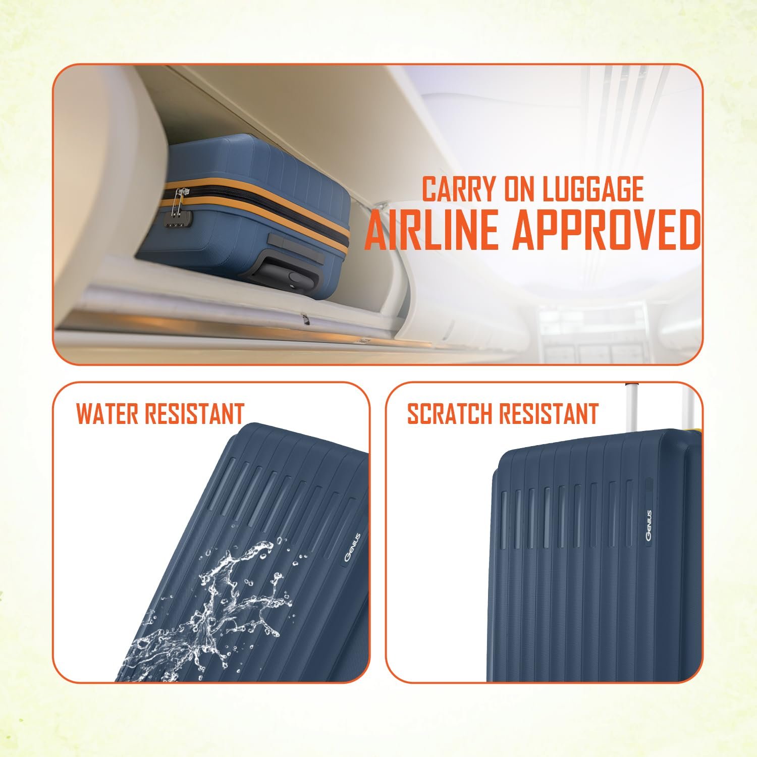 • Effortless Maneuverability- Fitted with 4 smooth-rolling spinner wheels, this carry-on suitcase glides effortlessly in every direction. The 360-degree wheeling system ensures seamless movement across terminals, stations, and parking lots.