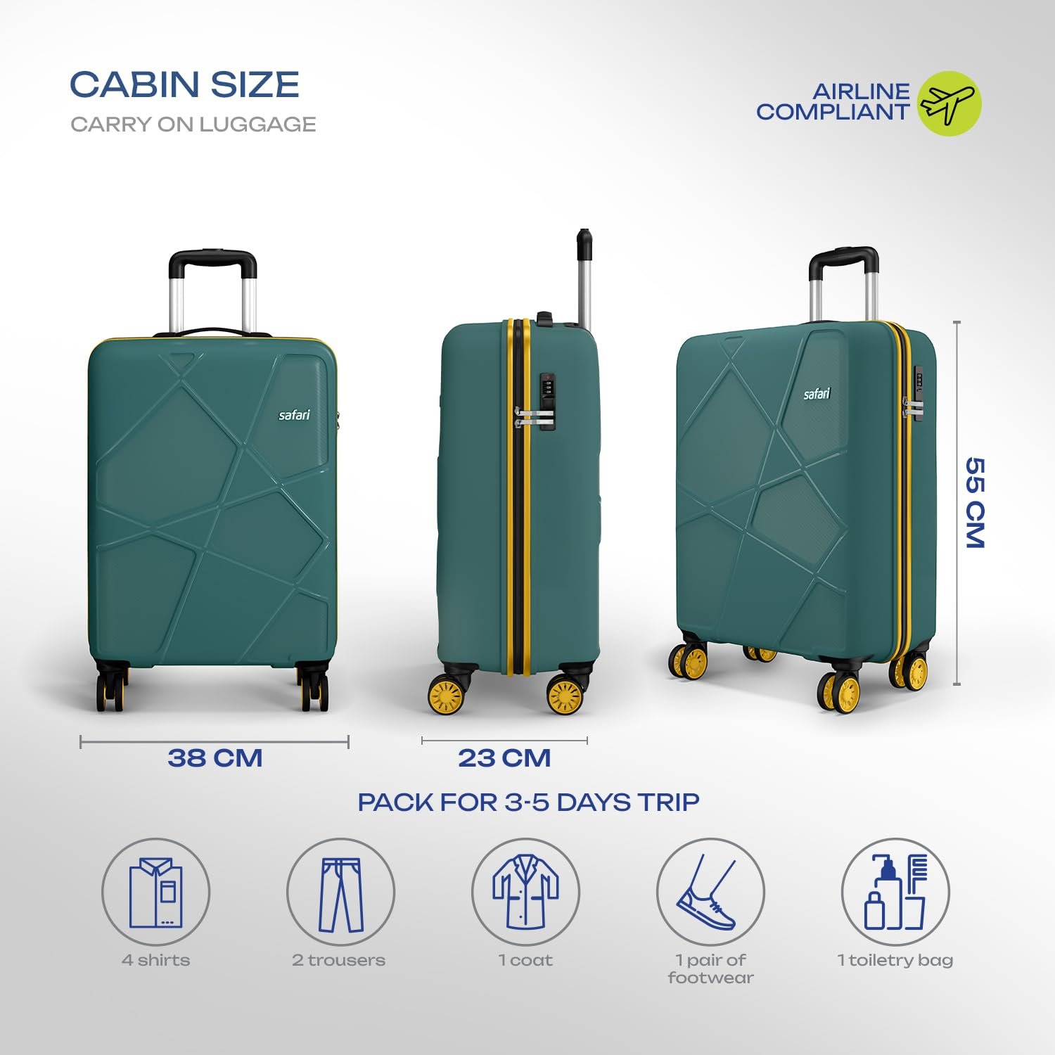 - Airline Compliant Luggage: This trolley bag features dimensions that maximize packing space and meet the size regulations of domestic and international airlines. Breeze through the airports with ease and say goodbye to baggage fees.