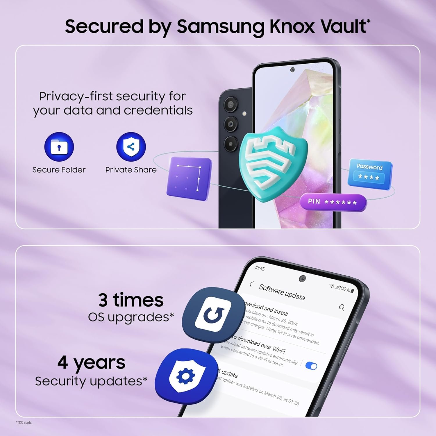 - OS UPDATES & SECURITY – Get upto 4 Generations of AndroidOS Upgrades & 5 Years of Security Updates with Samsung Galaxy A35. Includes 1 Year Manufacturer Warranty for Device and 6 Months for In-Box Accessories.