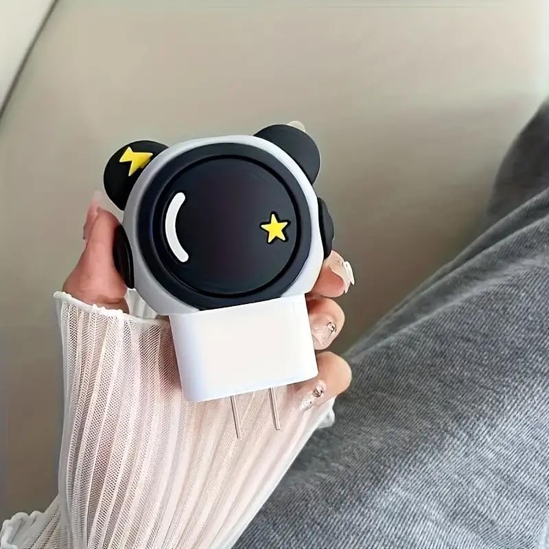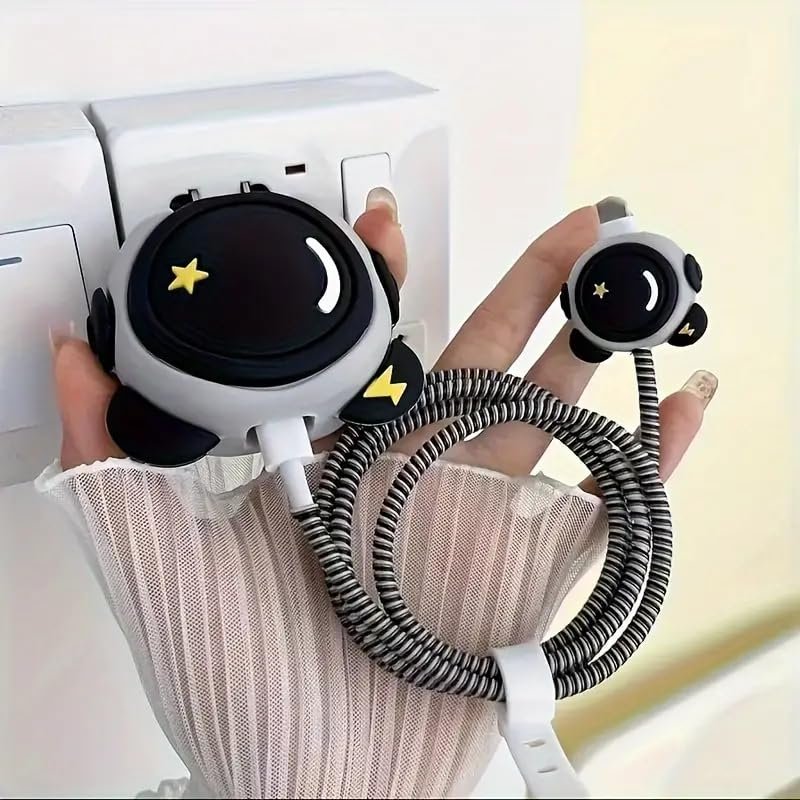 Skysia Wire Saver Charger Case for Apple 18W & 20W – 3D Astronaut Design, Silicone Charger Cover & Cable Protector, Full Protection & Fun Look (Astronaut Black)