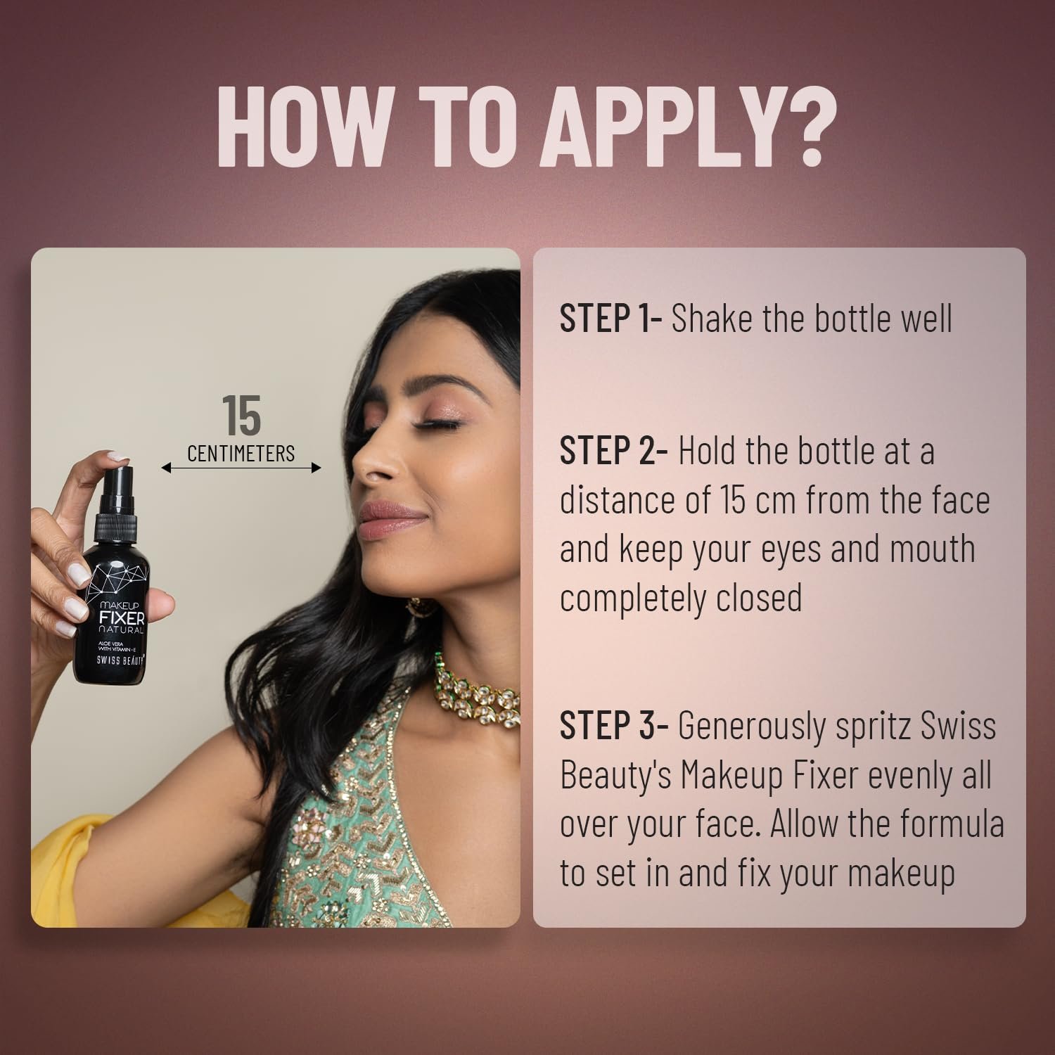 - Swiss Beauty Makeup Fixer is useful for setting your makeup.