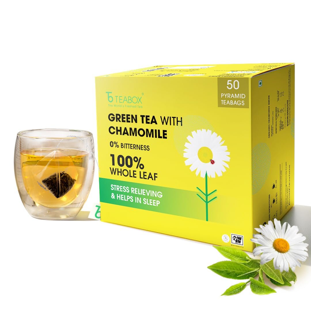 - About Teabox – Teabox delivers premium chamomile tea crafted from handpicked chamomile flower tea and whole green tea leaves with zero dust, zero bitterness, and 100% natural ingredients. A refined blend made for mindful tea drinkers