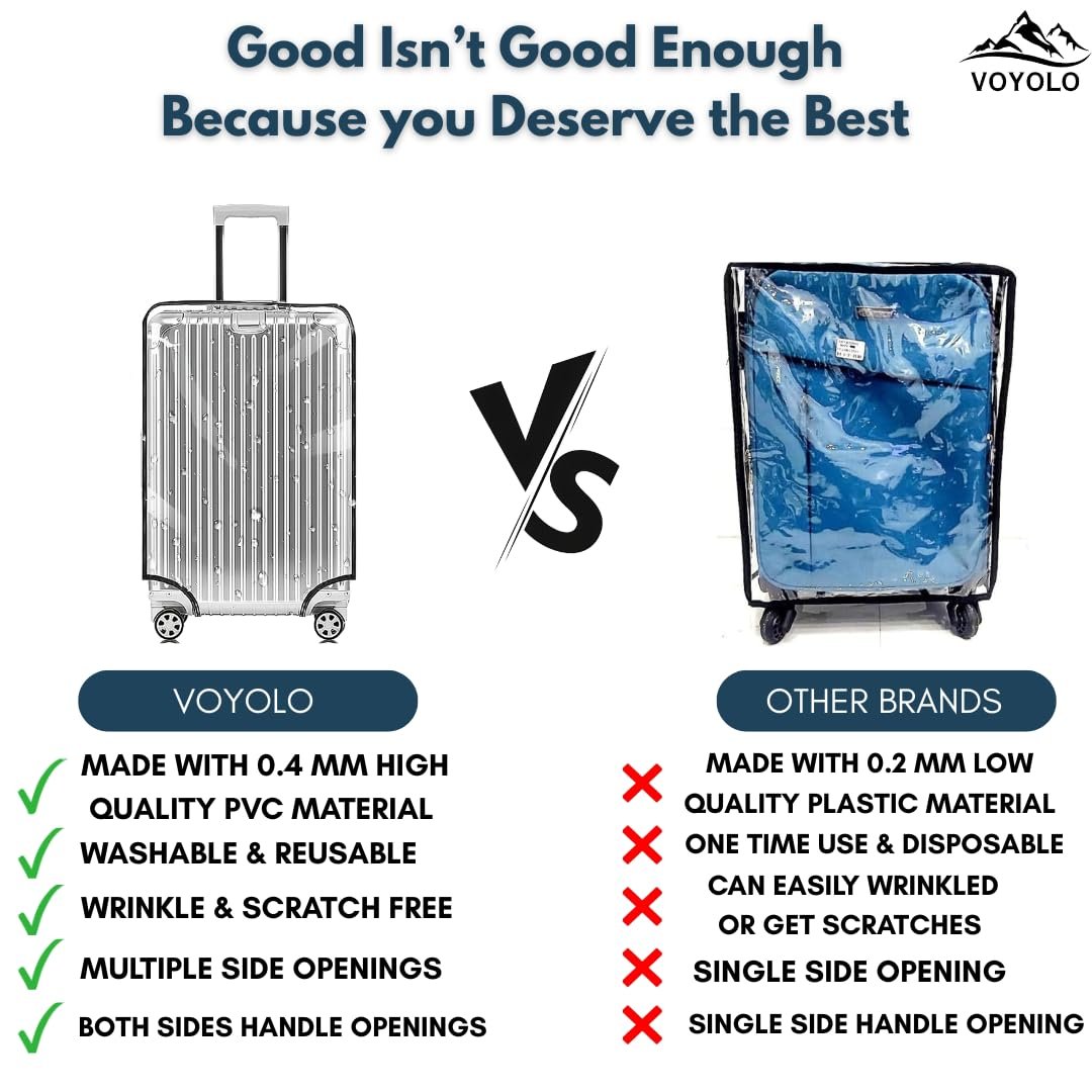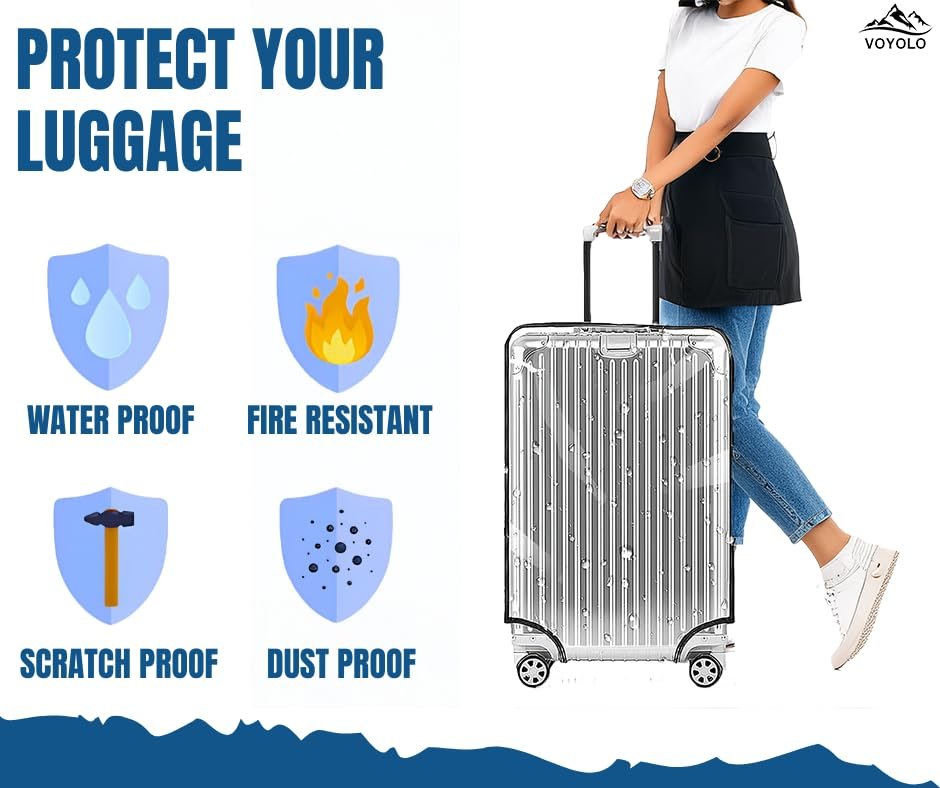 - Premium-Grade Transparent PVC – Crafted from 0.4mm thick durable PVC, this clear suitcase protector is waterproof, scratch-resistant, and built to last through frequent travel.