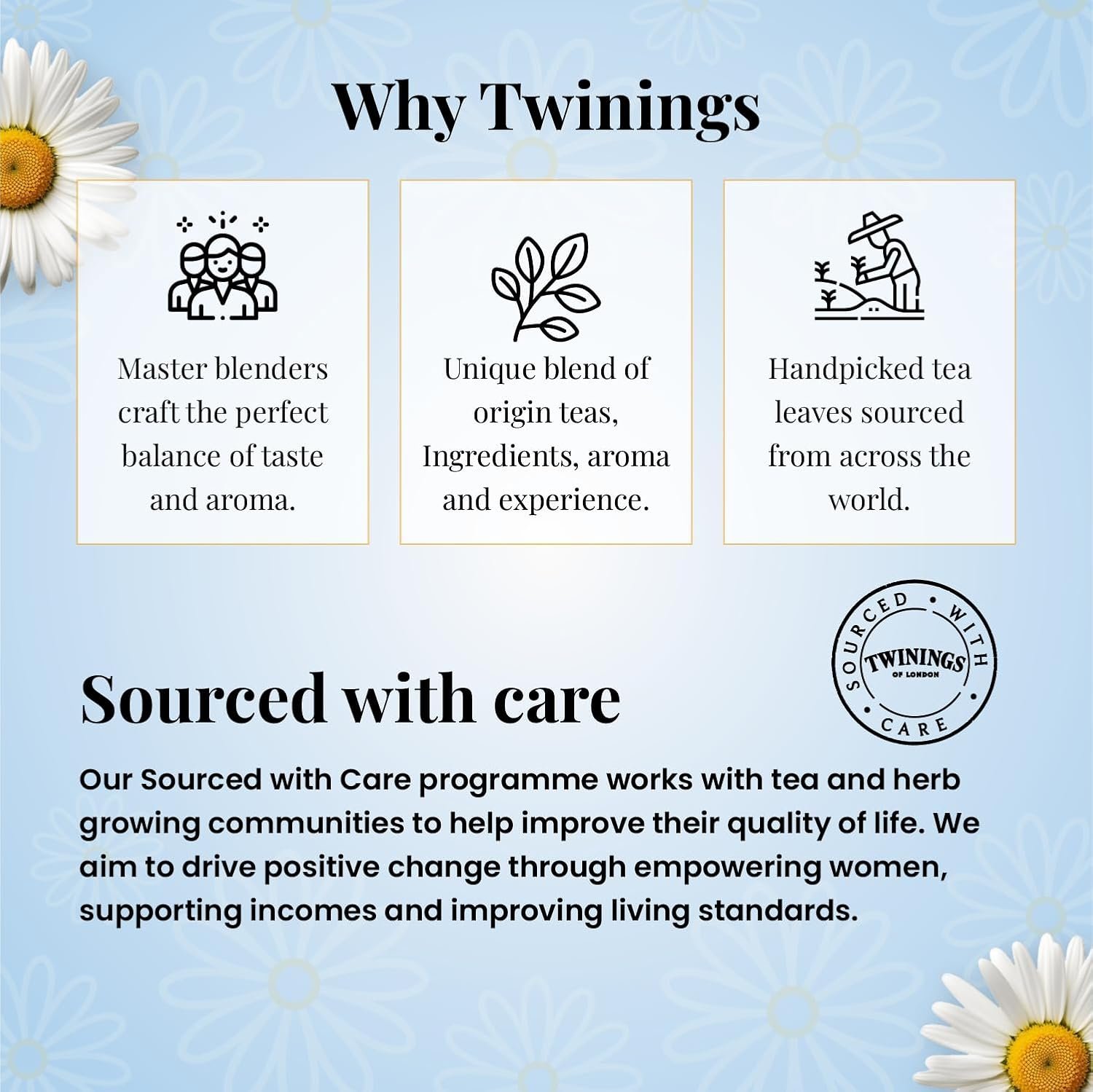 • SOURCED WITH CARE: Our responsible sourcing program aims to improve the lives of communities from which we source, by improving access to water and sanitation, empowering women, and enhancing incomes and resilience