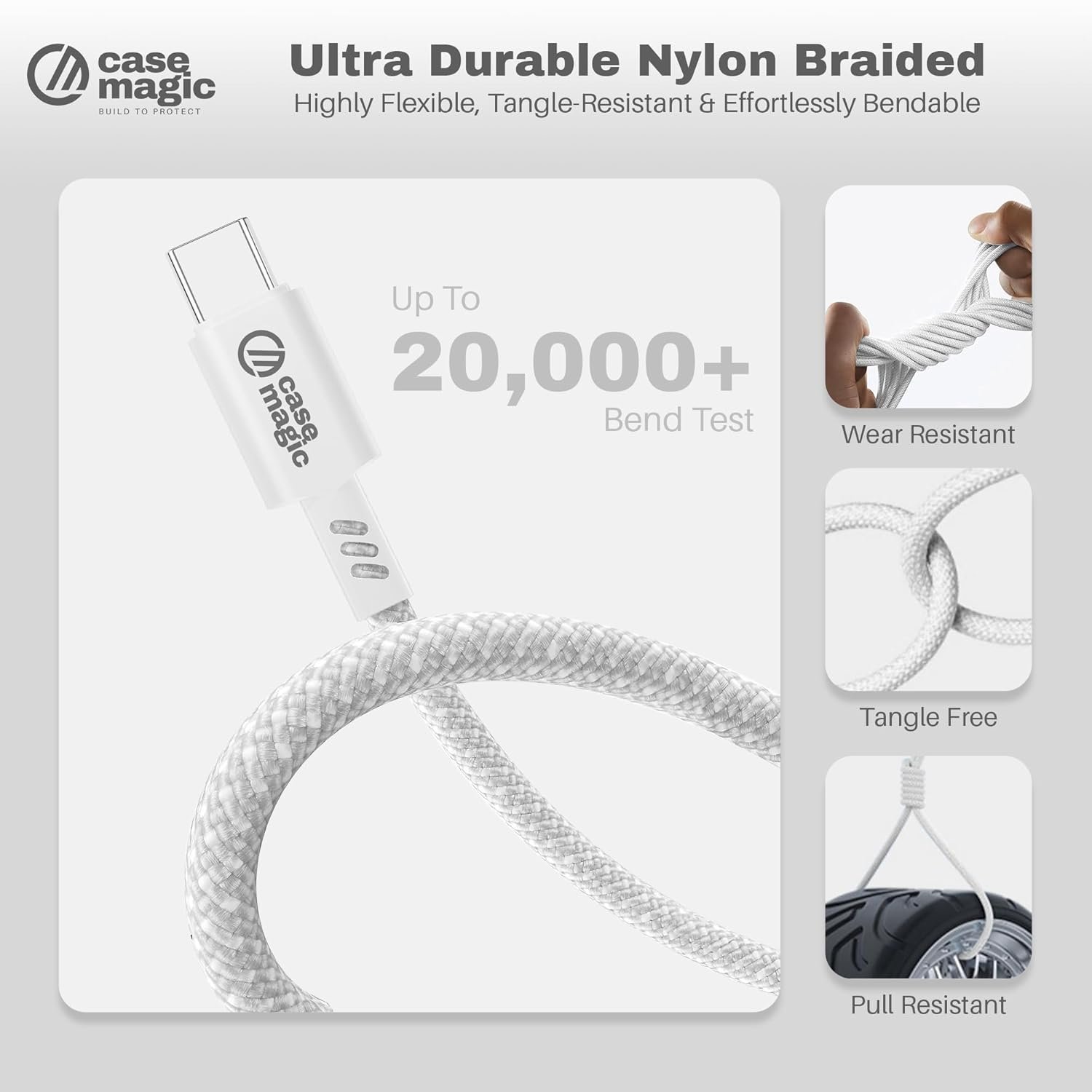 Unlike Flimsy Plastic Cables, This Cable Features A Rugged Nylon Braided Design Tested To Withstand 10,000+ Bends, Ensuring Long-Lasting Strength Even With Daily Heavy Use.