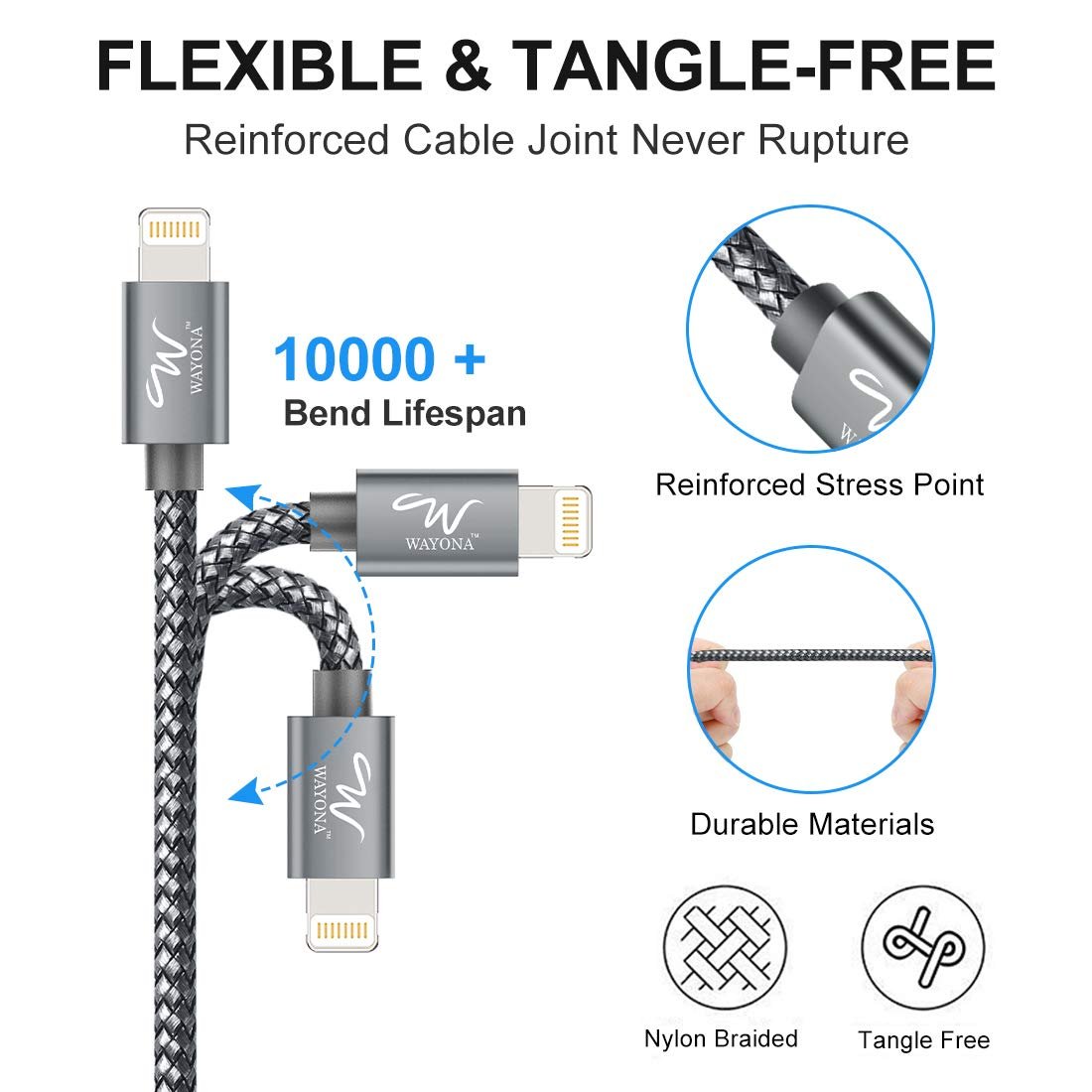 • [Durability] : Durable nylon braided design with premium aluminum housing and toughened nylon fiber wound tightly around the cord lending it superior durability and adding a bit to its flexibility.